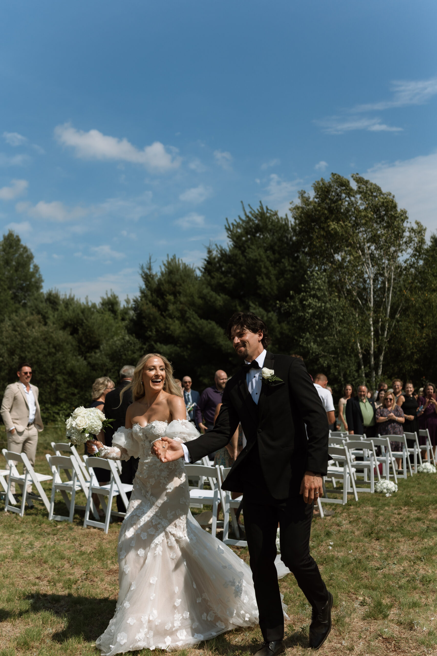Kat and Matt celebrated their wedding in Haliburton where Kat wore a stunning dress from Truvelle.