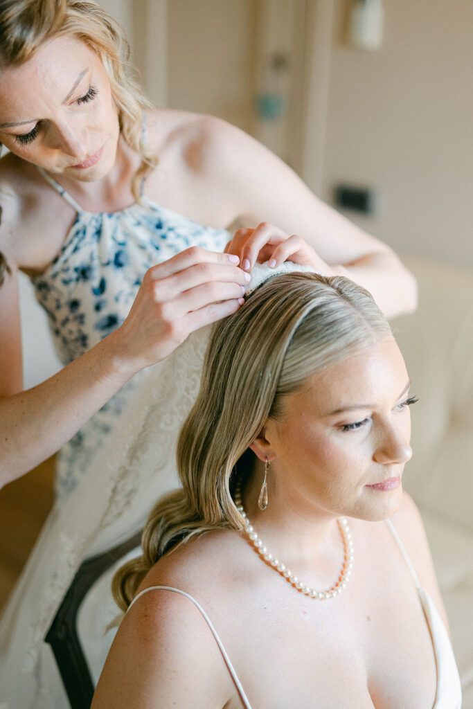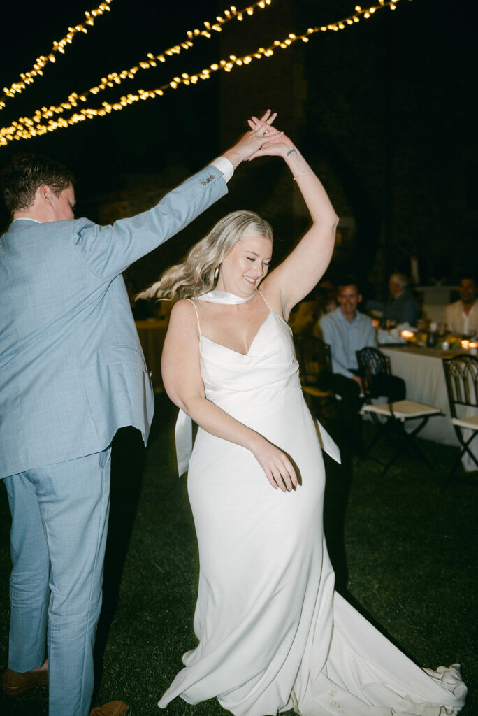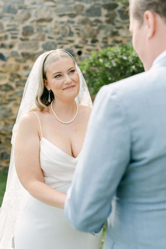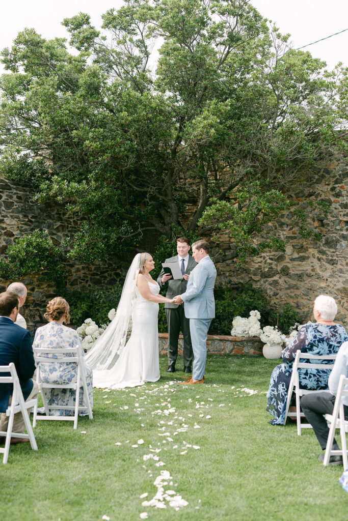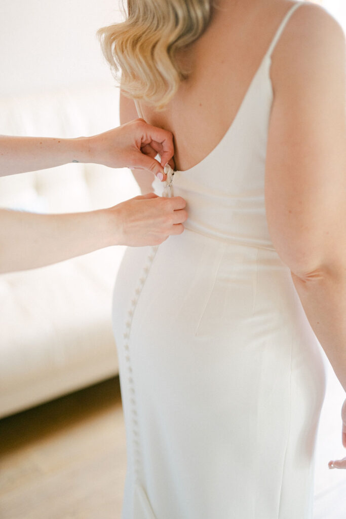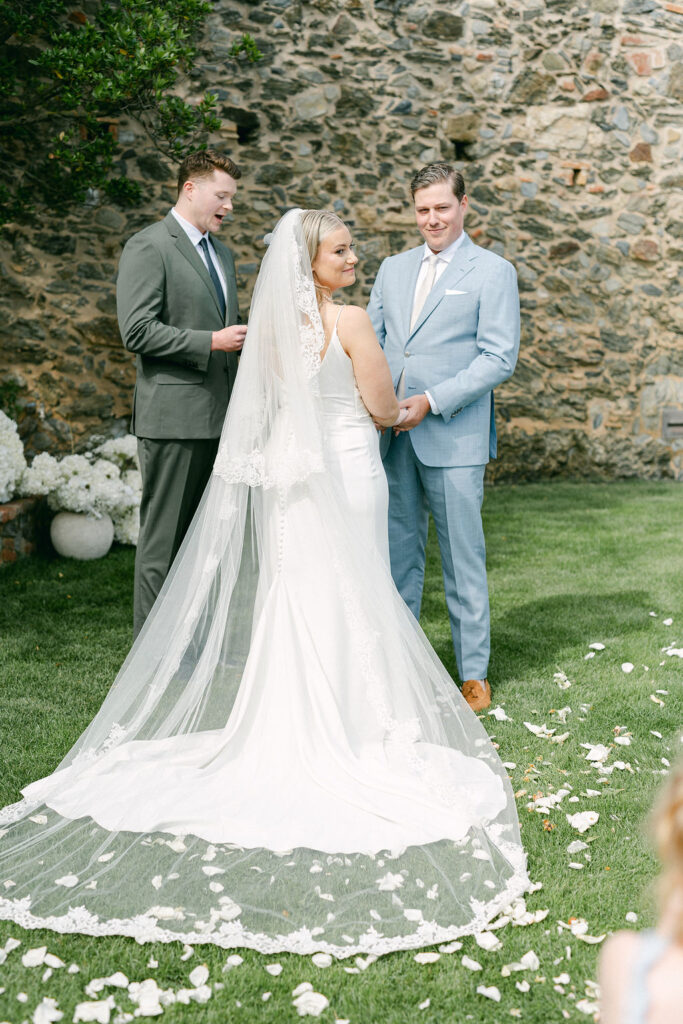 “We were married surrounded by close friends and immediate family at a beautiful private villa, Mas Torroella, in Costa Brava, Spain. I was so grateful to wear my Sash & Bustle dress paired with a veil lovingly handed down to me by my sister.”