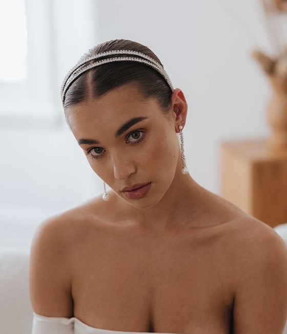 Adding hair clips into your bridal look are a simple yet striking accessory used to add sparkle, texture, or delicate detail to a hairstyle. Designed with small combs, clips, or pins, they secure easily into an updo, half-up style, or loose waves, helping hold sections of hair in place while also serving as decoration. Styles vary widely, from minimalist pearl pins and crystal barrettes to floral designs, vintage-inspired pieces, and sculptural metallic clips that make more of a statement. While decorative hairpieces have appeared in bridal fashion for centuries, modern hair clips became especially popular as brides began favoring more flexible alternatives to traditional tiaras and headpieces. Today they are valued for their versatility, since they can be placed almost anywhere in the hair and layered with other accessories like veils or combs. When choosing a bridal hair clip, brides often consider their hairstyle, the level of sparkle or detail they want, and how the piece complements the dress and other accessories, creating a cohesive finishing touch to the overall bridal look. If you are looking for something more dramatic than just a hair clip, headpieces are a way to truly personalize your look and look gorgeous while doing it. Headpieces can range in size and style, making something for every bride! Some of the designers that offer hair clips/headpieces at S+B are Avenue Accessories, Elizabeth Bower, Untamed Petals, and more!
