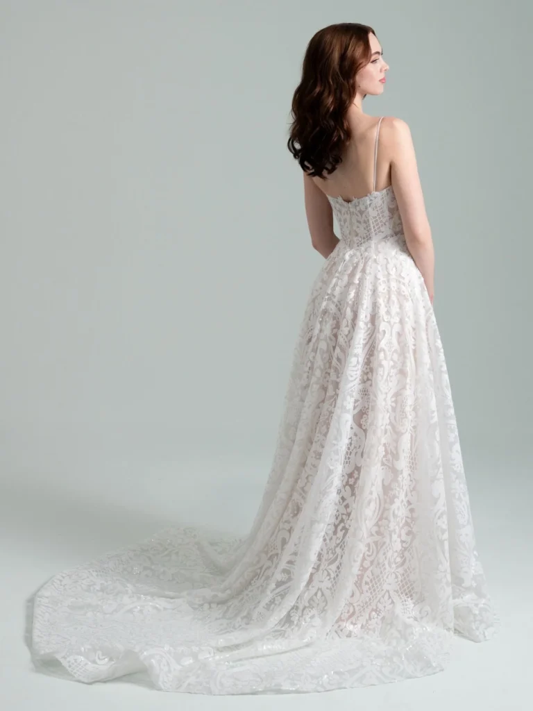 Why we love it: It’s airy yet structured, sparkle yet subtle, romantic yet modern. The hidden details feel like a gift to the bride who notices.