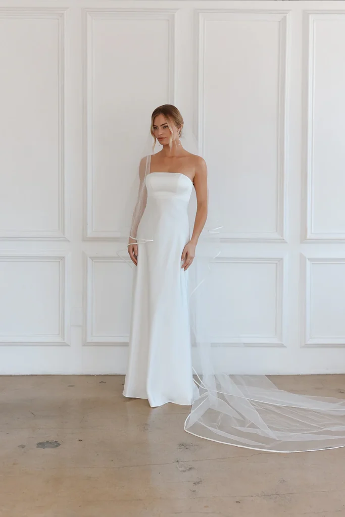 Simple, elegant, and endlessly timeless, the Hartley Veil is the perfect finishing piece to complement almost any gown. Available in both a one-tier cathedral and two-tier cathedral style, it brings just the right amount of softness and drama.