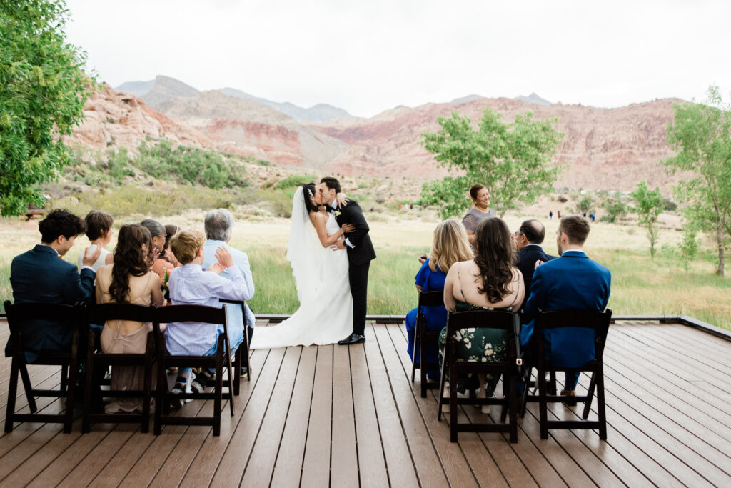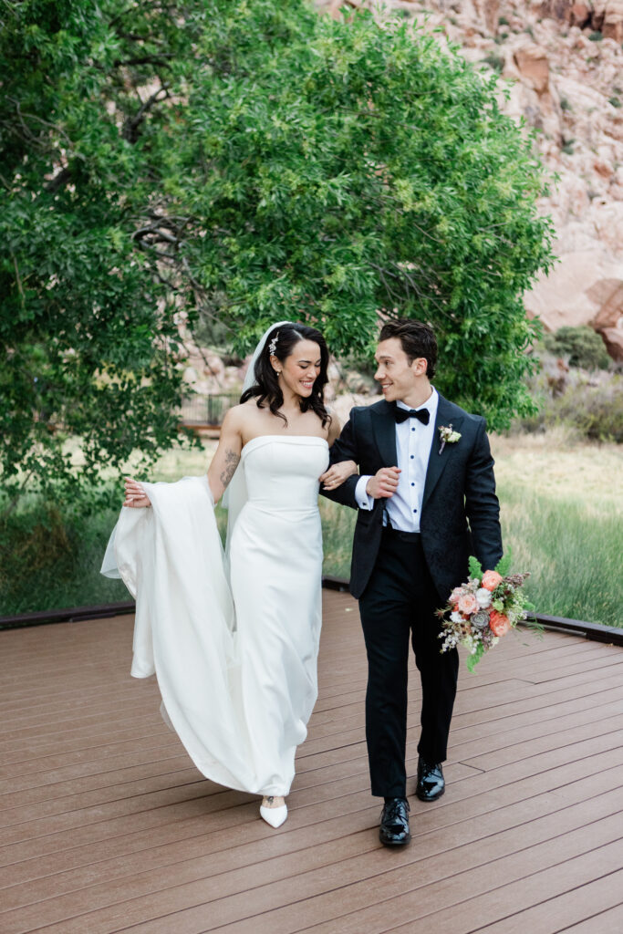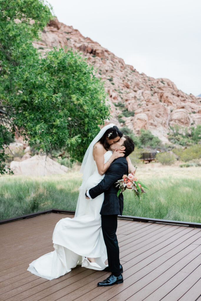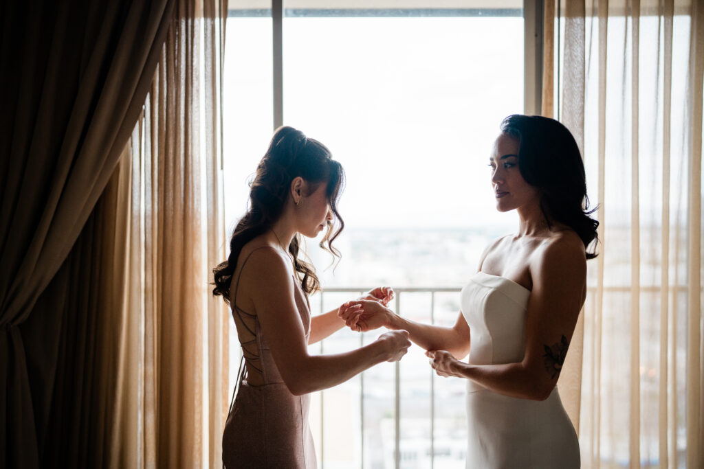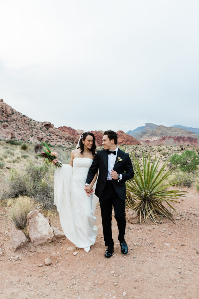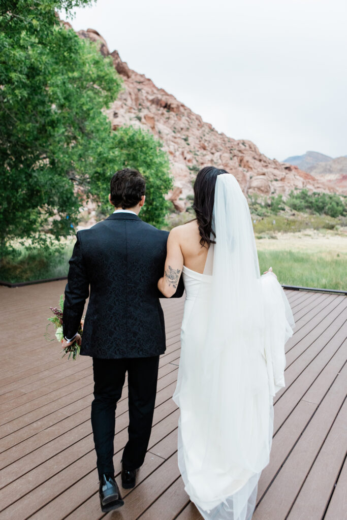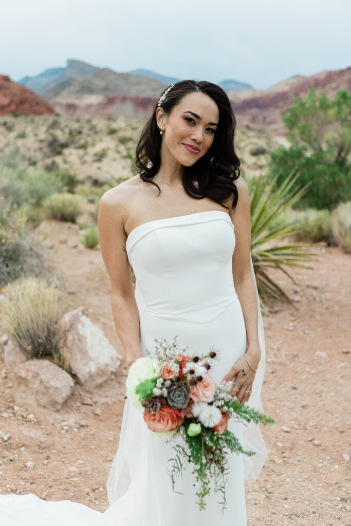 “Our wedding day was a whirlwind! From our restaurant having a water issue on the day of, to a wind storm right before the ceremony, it was chaotic. But thanks to the magic of a wedding, all things fell into place and worked out beautifully and I wouldn’t have had it any other way! With my dress, I wasn’t sure I’d ever find “the one” after trying on so many and not having a strong YES. When I tried on Hummingbird, I knew instantly that I felt amazing in it, and it transitioned perfectly from our sunset desert scape ceremony, to the Las Vegas Strip reception. I felt so confident and beautiful on the day of.”